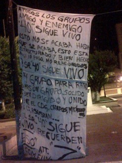 “Esto no se acaba hasta que se acaba, esto está estructurado y bien dirigido, aquí no pasó nada, no reacomodos ni nada”, cita el mensaje colocado en las mantas y firmado con la letra “Z”.