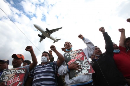 Desde el mediodía, profesores de la CNTE mantienen bloqueado el aeropuerto como parte de sus medidas de protesta contra la reforma educativa del gobierno federal.
