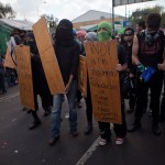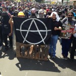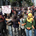 Transcurrió la tarde. A comparación de los anarquistas, los integrantes del movimiento #YoSoy132 no sumaban ni cien personas, en realidad no se hicieron notar en la marcha, mientras caminaban en la retaguardia con mantas del Instituto Politécnico Nacional, la UNAM y la Universidad Autónoma de la Ciudad de México. Predominaban las consignas del magisterio, las mismas que han hecho eco los últimos días en toda la Ciudad de México.