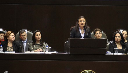 La diputada Alavez fue quien, desde la tribuna, denunció que después de la sesión se pretende imponer un dictamen de la Ley del Servicio Profesional Docente.