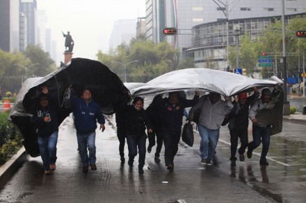 En la zona de la protesta podían observarse maestros intentando cubrirse de la lluvia con paraguas y capas de hule.