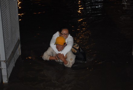Por la noche, personal del cuerpo de Relámpagos trasladó a decenas de ciudadanos en lanchas hasta el puente de La Concordia.