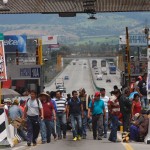 A lo largo de todo el día, maestros que permanecen en los campamentos de la plaza central de Tuxtla Gutiérrez se desplegaron en tres contingentes para dirigirse a las casetas de peaje.