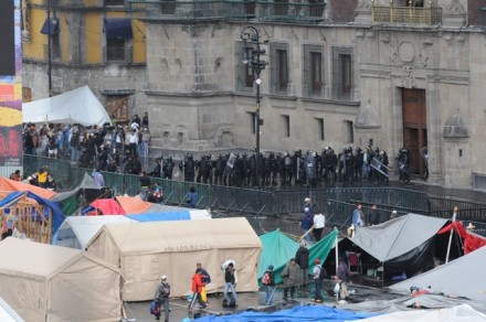 El secretario de gobierno del Distrito Federal, Héctor Serrano, informó que después de un diálogo entre la Policía Federal, el secretario de gobierno de Oaxaca, Alfonso Gómez Sandoval, y líderes de la Sección 22 de la CNTE, se fijo un plazo de dos horas para desalojar el Zócalo.