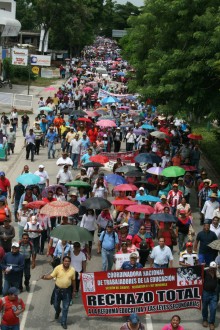 TUXTLA GUTIÉRREZ, Chis. (proceso.com.mx).- Unos 70 mil maestros de las secciones 7 y 40, así como normalistas, universitarios, padres de familia y organizaciones sociales, marcharon en la capital del estado para impugnar la reforma educativa del presidente Enrique Peña Nieto y anunciaron la creación del Frente Único de Lucha.