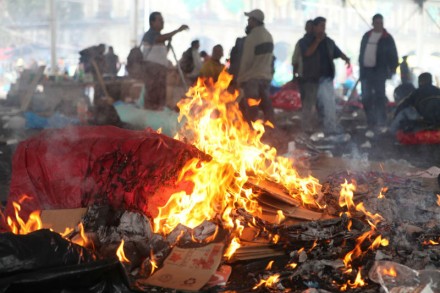 “Parece un auténtico campo de guerra. Los maestros quemaron sus propios campamentos”, afirmó un reportero de Canal 40 desde un helicóptero que sobrevoló el Zócalo.
