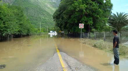 En el punto conocido como Tecopa, municipio de Huamuxtitlán, se encuentra inundada la carretera que conecta a la Montaña y el estado de Puebla, situación que impide el paso de vehículos compactos y sólo pueden transitar unidades grandes.