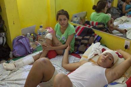 Nancy tiene la pierna vendada, moretones en el cuerpo y curaciones en ambas rodillas. Una cuñada lleva en brazos al bebé Jaxel, a dos meses de cumplir dos años. Está en pañales, apenas se le alcanzan a ver unos raspones y las dos puntadas que le cosieron en la pierna. Parece no recordar lo ocurrido aunque su mamá dice que después del accidente lloraba. José Ángel, de 16 años, a quien le crece un simulacro de bigote, yace a un lado.