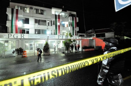 Los hechos ocurrieron alrededor de las 22:30 horas de este sábado cuando un grupo de encapuchados vestidos tipo militar, a bordo de dos camionetas Suburban, una de ellas con placas del estado de Tamaulipas –según testigos– dispararon armas R-15 y arrojaron dos granadas de fragmentación sobre el edificio de la PGR, ubicada en la calle Rosendo Taracena de esta capital.