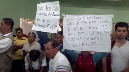 Robles Berlanga, acompañada por la directora de la Comisión para el Desarrollo de los Pueblos Indígenas (CDI), Nubia Mayagoitia, fue recibida con pancartas, mantas y discursos donde los montañeros sintetizaron la indignación ante la falta de ayuda gubernamental.