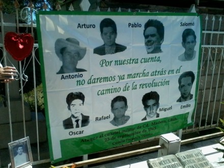 “Cuando ocurrió el asalto, las autoridades municipales recogieron los cadáveres de los ocho guerrilleros. Como llovía, los llevaron a la explanada de la presidencia municipal. En la tarde la población fue a ver los cuerpos y la familia Gaytán (que vivía en Madera) reconoció a Salomón Scobell Gaytán y se los entregaron”, relata Muñoz.