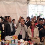 La visita de esta tarde tuvo el propósito de recorrer las carpas instaladas por su gobierno y el del Distrito Federal, convertidas en centros de acopio de víveres y enseres para los damnificados de la tormenta tropical Manuel y el huracán Ingrid que devastaron amplias zonas del país la semana pasada.