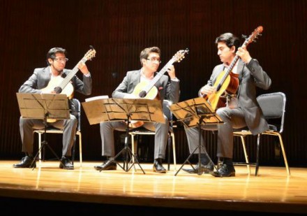 El Terceto Cuicacalli, compuesto por los guitarristas Diego Arturo Arias, Miguel Ángel Vences y Jesús Eduardo Rodríguez de la Torre, ofrecerá un concierto contemporáneo este sábado 28 de septiembre en el Palacio de Bellas Artes. El grupo, ganador del mejor ensamble de música en el Festival Internacional de Música de Cámara de San Miguel de Allende 2013, interpretará Baiao de Gude y A furiosa de Paulo Bellinati, Célula de Aarón David Trápala, Danza ritual de Tomás Barreiro, Turbulencia de Leonardo Prieto, Fin de siglo de Máximo Diego Pujol y El retorno de Kukulkán de Julio César Oliva. No se puede perder este singular recital en la Sala Manuel M. Ponce en Avenida Juárez, esquina Eje Central, Centro Histórico (Metro Bellas Artes).
