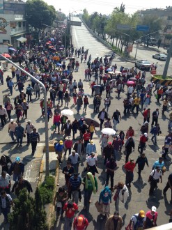 Los manifestantes marchan sobre la calzada Ignacio Zaragoza rumbo al Congreso de la Unión.