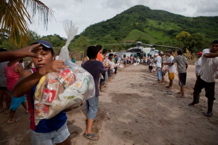 ACAPULCO, GRO. (Proceso).- El helicóptero aterriza en Omitlán después de sobrevolar lo que desde el cielo se ve como un laberinto de puentes destruidos, montes de arena descoyuntando carreteras, caminos chimuelos y gente como mulas cargando despensas, ropa, animales y botellas de agua en la espalda. La aeronave causa expectación en este pueblo de Tierra Caliente. Niños, jóvenes y adultos forman de inmediato dos filas encima de la arena para descargar el primer vehículo oficial que llega con comida, una semana después de la tragedia.