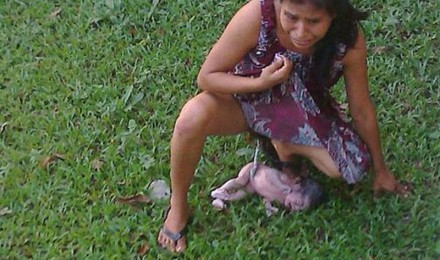 Un ciudadano que estaba en el lugar tomó una imagen de lo que pasaba, justo tras el alumbramiento. Se ve a la mujer en cuclillas, y al niño en el césped, aún unido por el cordón umbilical.