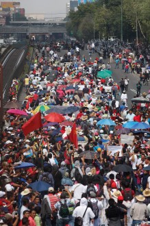 MEXICO, D.F. (apro).- Integrantes de la Coordinadora Nacional de Trabajadores de la Educación (CNTE), maestros de Guerrero y sindicalizados del IMSS marcharon esta mañana desde la Torre del Caballito, sobre Reforma, hasta las oficinas centrales del Seguro Social.