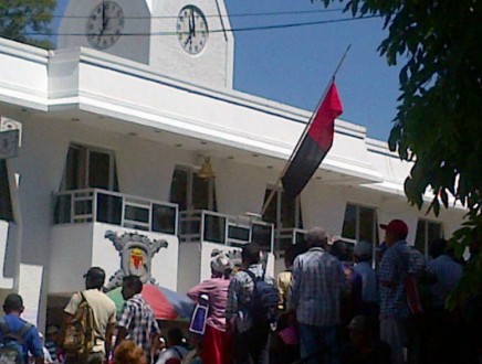En Palenque, indígenas choles y tzeltales izaron la bandera rojinegra en la presidencia municipal en señal de protesta por los 521 años de dominio y explotación sobre los pueblos nativos de Chiapas, dijeron.