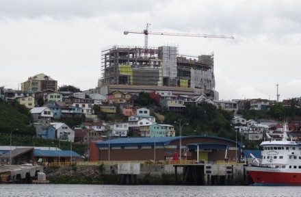 A fines de febrero de 2012 circuló en las redes sociales la imagen de la obra gruesa de ese proyecto, que conmocionó a todo el país. Lo grotescamente desproporcionado del volumen de esa edificación, en relación con las pequeñas y graciosas construcciones de madera de alerce que la rodean –entre ellas la iglesia San Francisco (Patrimonio Mundial)–, hizo pensar a muchos que se trataba de un montaje fotográfico, pero la escena era real.