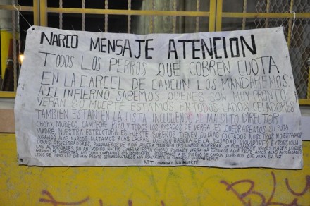Apenas el pasado 14 de octubre en un predio ubicado en la región 230 fue difundido un mensaje contra el director de la cárcel estatal de Cancún, Salvador Reyes: “Este narco mensaje va para el director del Cereso de Cancún, tiene 24 horas para sacar al perro del Pipo del penal o usted pagara las consecuencias. Atentamente El Chino. 1º aviso el próximo será personal” (sic).