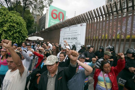 De manera simultánea, otro grupo se manifestó frente a la sede del PRI ubicado en Insurgentes Norte y Luis Donaldo Colosio, donde realizaron un cierre simbólico del partido. Elementos de la Secretaría de Seguridad Pública del Distrito Federal (SSPDF) resguardaron el inmueble.