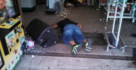Uno de los cuerpos quedó en la calle, otro en la puerta de entrada y el tercero como a cinco metros de la tienda de autoservicio.