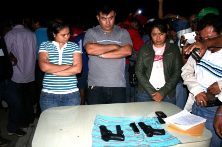 La noche del miércoles, cuando los maestros de la Sección VII de la CNTE se encontraban reunidos en el auditorio de su sindicato para celebrar su asamblea estatal, la guardia magisterial interceptó a tres personas sospechosas, un hombre y dos mujeres, que dijeron ser maestros también. Sin embargo, al ser interrogados, éstos cometieron contradicciones, por lo que fueron detenidos y despojados de sus pertenencias.