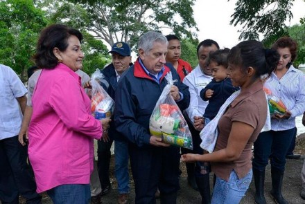 El gobernador Arturo Núñez recorrió este día comunidades afectadas en el municipio de Macuspana, donde entregó despensas.
