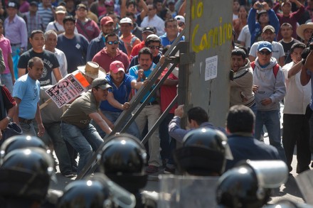 MÉXICO, D.F., (proceso.com.mx).- Miembros de la Coordinadora Nacional de Trabajadores de la Educación (CNTE) rompieron el cerco que resguarda al Senado en protesta por los trabajos legislativos para aprobar la reforma energética.