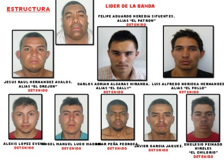El resto de la banda la integraban: Felipe Eduardo Heredia, de 41 años, originario de Gómez Palacios, Durango; Jesús Raúl Hernández Avalos, de 24; Abraham Emelecio Peinado Mireles, de 18; Carlos Omar Peña Pedroza, de 22; Javier Andrés García Jáquez, de 22; Ángel Manuel Lugo Madrid, de 18; Alexis López Evens, de 19; Luis Alfredo Noriega Hernández, y Carlos Adrián Alcaraz Miranda.