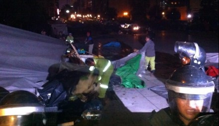 MÉXICO, D.F. (proceso.com.mx).- Elementos del grupo de granaderos desalojaron el plantón que la Coordinadora Nacional de Trabajadores de la Educación (CNTE) mantenía desde hace algunos meses en el Monumento a la Revolución.