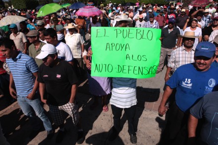 En la asamblea realizada esta mañana en el zócalo, cientos de pobladores manifestaron su apoyo a los grupos de autodefensa ciudadana.