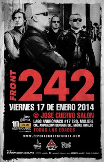 La agrupación pionera en los ochenta de la música electrónica digital Front 242 vuelve a México para ofrecer dos conciertos los días 17 y 18 de enero con un nuevo espectáculo visual y versiones recientes a piezas clásicas “muy cercanas a las originales”, según anuncia Richard 23, quien irá acompañado en el escenario por los otros miembros históricos de esta banda nacida en Bélgica: Patrick Codenys, Daniel Bressanutti, Jean-Luc de Meyer y Tim Kroker.