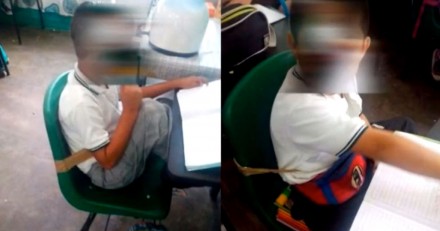 Los padres de familia denunciaron –y tomaron fotografías para probarlo– que sus hijos eran amarrados por la maestra María Esther Escalante Rosado, encargada del grupo B del segundo grado.