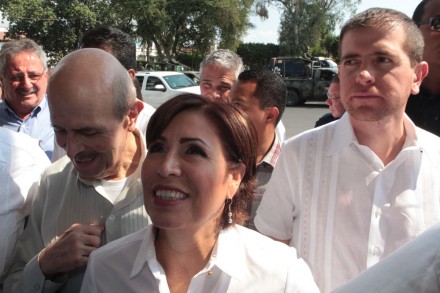 Rosario Robles llegó acompañada del mediador Alfredo Castillo –recién nombrado comisionado para la Seguridad y Desarrollo Integral del estado– y del gobernador priista Fausto Vallejo, en medio de un fuerte operativo de seguridad. Había una decena de camionetas blindadas, soldados y policías artillados, civiles con rifles de asalto, así como helicópteros que todo el tiempo sobrevolaban por el palacio municipal.