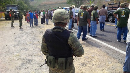 Por su parte, cientos de soldados instalaron dos retenes sobre la carretera federal para impedir que los inconformes porten armas durante la marcha.