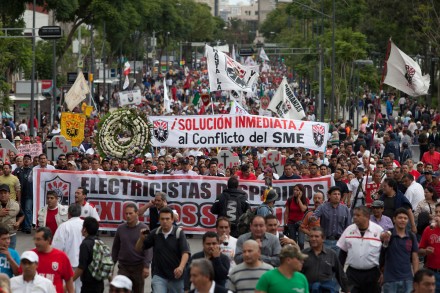 MÉXICO, D.F., (proceso.com.mx).- Alrededor de mil miembros de la Coordinadora Nacional de Trabajadores de la Educación (CNTE) y del Sindicato Mexicano de Electricistas (SME) marchan de Reforma rumbo al Zócalo en protesta a las reformas impulsadas por el gobierno federal y aprobadas por el Poder Legislativo.