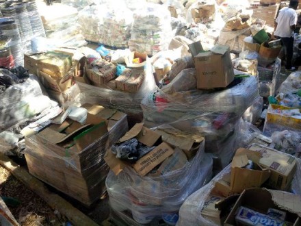 La ayuda alimentaria proveniente de varios estados de la República y fundaciones cómo Telmex. Permanece a la intemperie y expuesta a los estragos de la naturaleza.