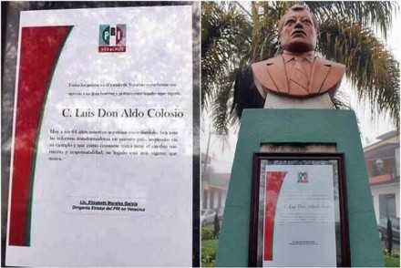 Un día después, el yerro se repitió, pues en la placa conmemorativa del aniversario luctuoso, el staff del PRI estatal dejó el “Luis Don Aldo Colosio” y así fue entregada y puesta en el busto del candidato presidencial en la elección de 1994 y asesinado en la colonia Lomas Taurinas de Tijuana, Baja California.