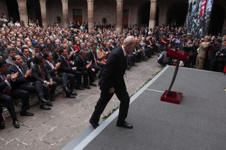 Antes, dijo, “había acciones aisladas contra la delincuencia, como aquella famosa declaración de guerra, pero éstas se hacían de manera unilateral, sin consenso, sin armonía con los estados. Desde hace dos años le planteamos a Calderón que intervinieran fuerte”, acusó el mandatario michoacano.
