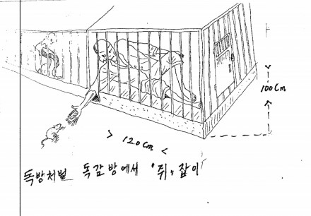 Kim Gwang también sufrió la “tortura de la paloma”. Dijo que en esta posición le pegaban en el torso hasta que vomitara sangre. Además, lo sometieron a las torturas “del avión” y “de la moto”, otras posiciones que debía mantener hasta desmayarse.