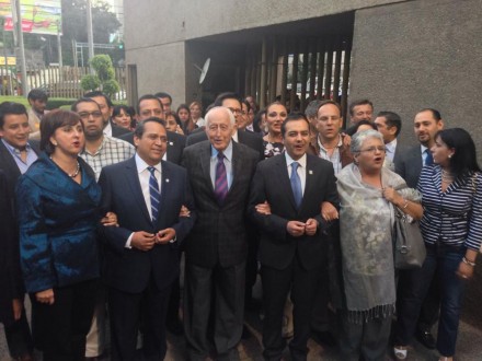 MÉXICO, D.F. (apro).- Con Juan Manuel Oliva, Ana Teresa Aranda y José Luis Luege, miembros de El Yunque, y lo que queda del grupo de Felipe Calderón, Ernesto Cordero registró hoy su candidatura por la presidencia del Partido Acción Nacional (PAN).