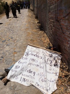 CHILPANCINGO, Gro. (apro).- El cadáver de un hombre fue localizado esta mañana con un mensaje dirigido al gobernador Ángel Aguirre Rivero y a la Policía Federal (PF), corporación que desde hace 20 días asumió el control de la seguridad en esta capital y desató una cacería contra los integrantes del grupo delincuencial Los Rojos.