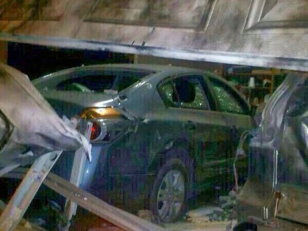 La explosión dañó también el portón automático de la cochera que mide cuatro metros y medio y al menos dos vehículos que se encontraba en el interior.