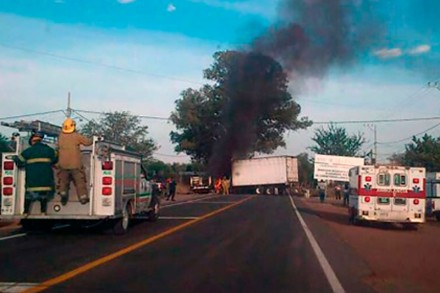 Más tarde, los delincuentes bloquearon la carretera con vehículos incendiados, una camioneta y un camión de reparto de Lala, para huir del lugar.
