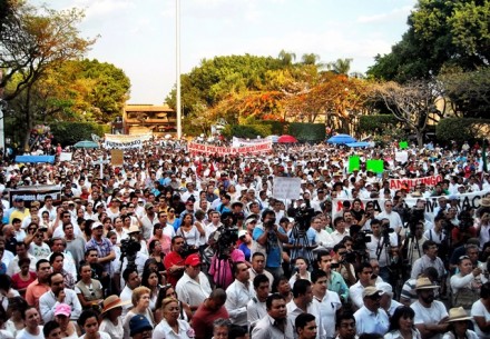Gerardo Becerra Chávez, dirigente de la Coordinadora Morelense de Movimientos Ciudadanos, cabeza de la marcha que el martes 1 reunió a por lo menos cuatro mil ciudadanos, explica: “En 2013 hicimos la primera manifestación motivados por la inseguridad. En ella le pedimos al gobernador que no estableciera un término de 18 meses y cambiara la estrategia de seguridad. Nos respondió mandando a Antorcha Campesina a tomar la Plaza de Armas. Tuvimos que ir al Palacio de Cortés sin sonido, sin nada. En septiembre de ese año fue la segunda, y la tercera, ésta del 1 de abril”.