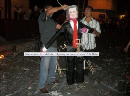 Entre los judas se encontraba un muñeco con el que los pobladores representaron al presidente Enrique Peña Nieto.