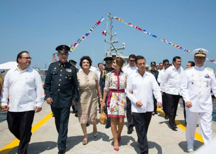 Peña Nieto hizo énfasis en su respaldo a las instituciones del gabinete de seguridad, entre ellas Policía Federal, Ejército Mexicano, y en especial a la Secretaría de Marina-Armada de México.