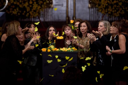 “Este homenaje me recuerda el mundo de García Márquez por su colorido amarillo, es como un funeral que él bien pudo haber escrito o Federico Fellini filmado. Tengo la impresión de que en cualquier momento las flores amarillas pueden levantarse en torbellino por todo Bellas Artes. Una linda combinación para una vida en el final”.