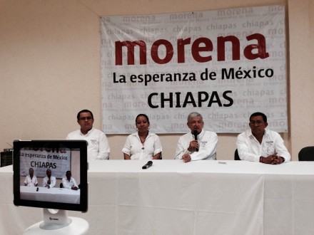 TUXTLA GUTIÉRREZ, Chis. (proceso.com.mx).- Andrés Manuel López Obrador acusó al presidente Enrique Peña Nieto, al secretario de Gobernación, Miguel Ángel Osorio Chong; al subsecretario de Gobernación, Luis Enrique Miranda Nava y al empresario Emilio Azcárraga Jean, de estar tras la campaña sucia contra la periodista Carmen Aristegui.